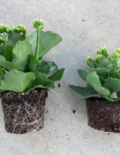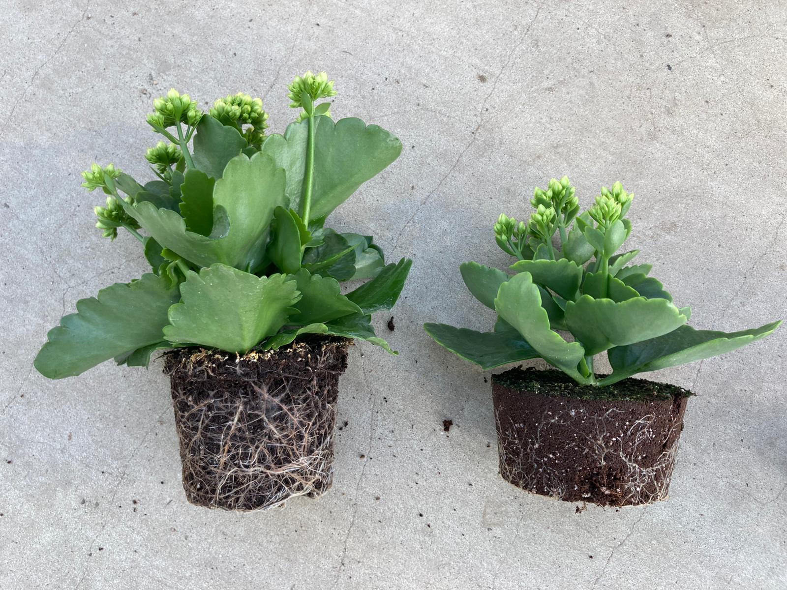 Produktvergleich von Cleverpot und dem eines vergleichbaren Mitbewerbers, gleiche Pflanze (Sorte), gleiche Verarbeitung, gleicher Stecktag, gleiche Kulturzeit.